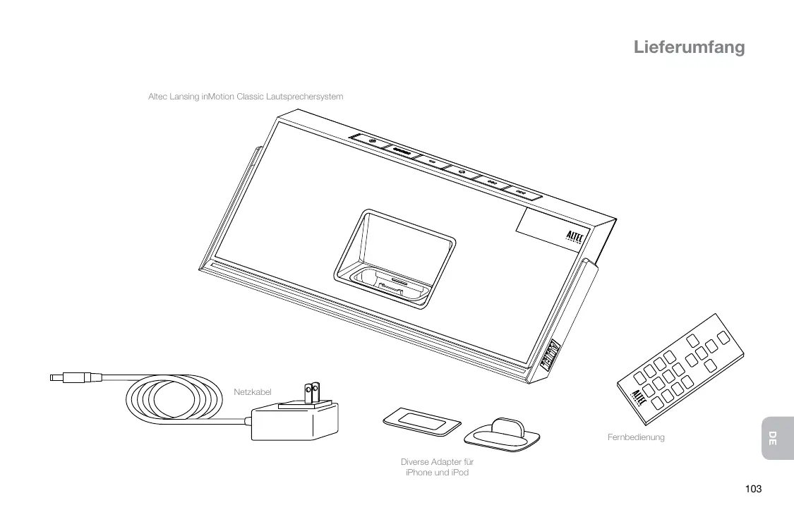 Lieferumfang Altec Lansing inMotion Classic Lautsprechersystem Netzkabel