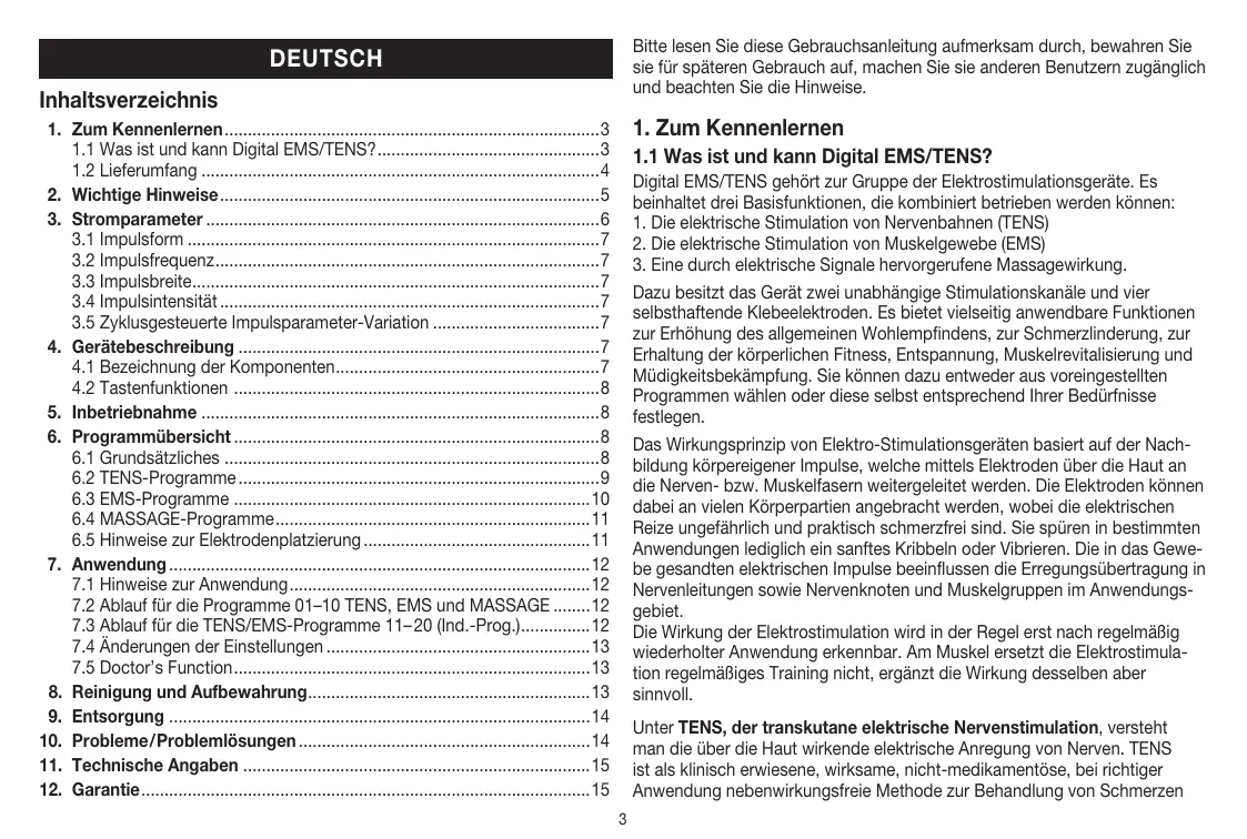 1.1 Was ist und kann Digital EMS/TENS?.................................................3