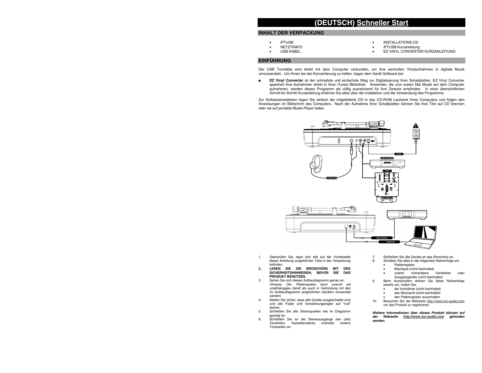 IPTUSB - Plattenspieler ION - Kostenlose Bedienungsanleitung