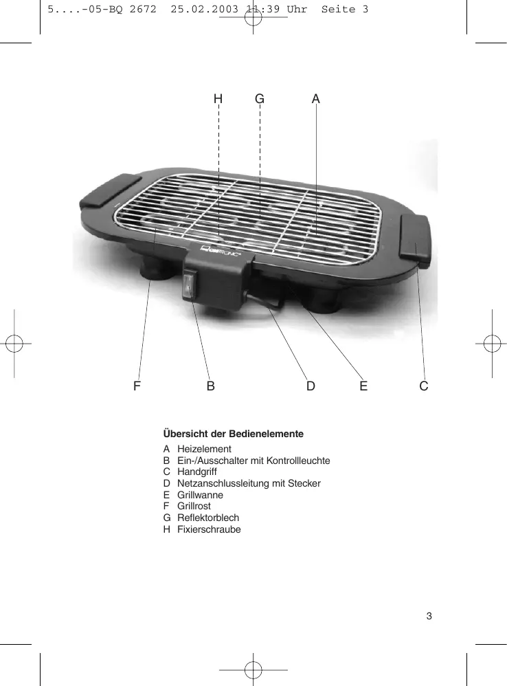 BQ 2672 - Elektrischer Grill CLATRONIC - Kostenlose Bedienungsanleitung