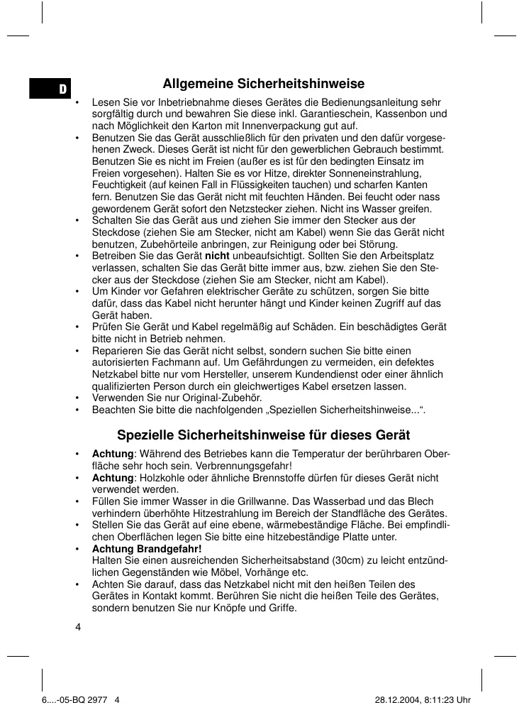 BQ 2977 - Elektrischer Grill CLATRONIC - Kostenlose Bedienungsanleitung