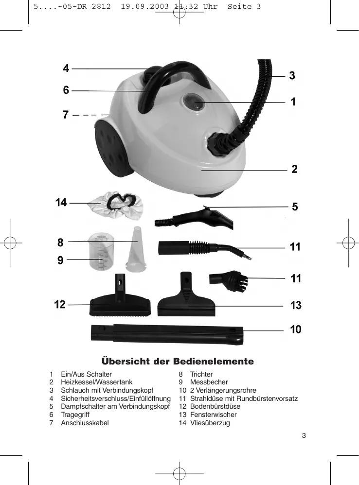Seite 1 Bedienungsanleitung/Garantie Gebruiksaanwijzing/Garantie • Mode d’emploi/Garantie Instrucciones de servicio/Garantía • Manual de instruções/Garantia Istruzioni per l’uso/Garanzia • Bruksanvisning/garanti Instruction Manual/Guarantee • Instrukcja obsługi/Gwarancja Návod k použití/Záruka • A használati utasítás/garancia Руководство по эксплуатации/Гарантия Dampfreiniger Stoomreiniger • Nettoyeur-vapeur Pulitore a vapore • Depurador de vapor Máquina de limpar a vapor • Damprenser Steam Cleaner • Urządzenie do czyszczenia parą Přístroj na čištění párou • Gőzölős tisztítógép Пароочиститель DR 2812 5....-05-DR 2812