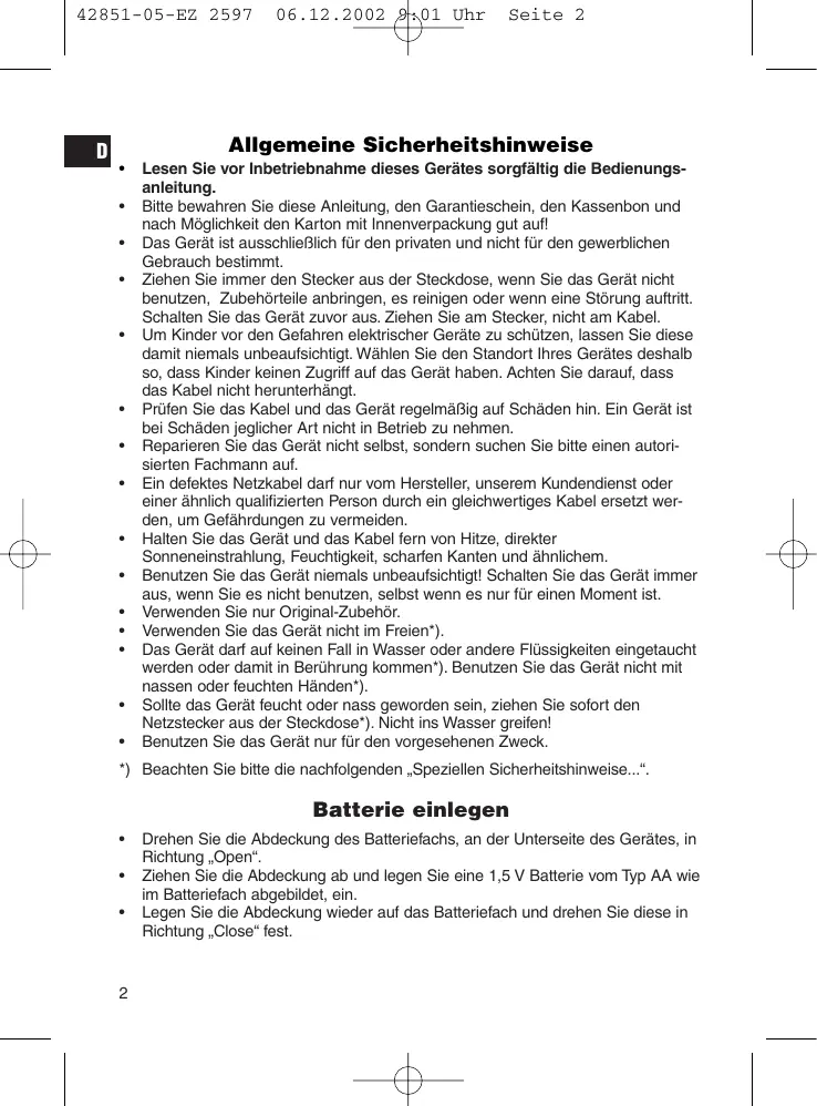 BEDIENUNGSANLEITUNG EZ 2597 CLATRONIC