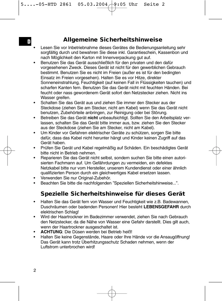 HTD 2861 - Haartrockner CLATRONIC - Kostenlose Bedienungsanleitung