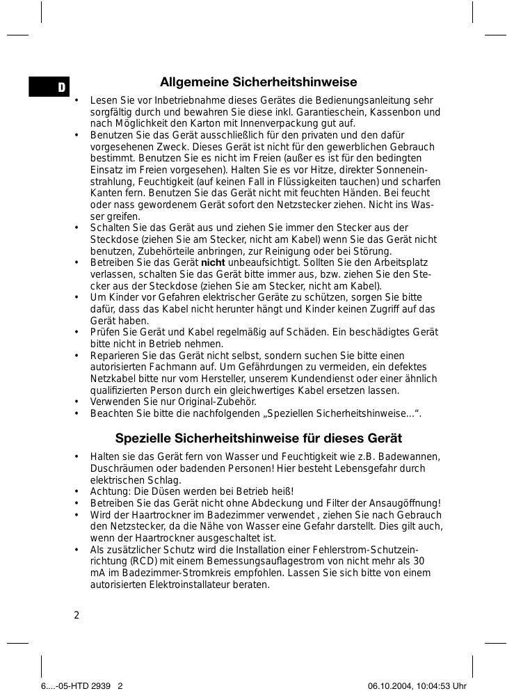 Laden Sie die Anleitung für Ihr Undefiniert kostenlos im PDF-Format! Finden Sie Ihr Handbuch HTD 2939 - CLATRONIC und nehmen Sie Ihr elektronisches Gerät wieder in die Hand. Auf dieser Seite sind alle Dokumente veröffentlicht, die für die Verwendung Ihres Geräts notwendig sind. HTD 2939 von der Marke CLATRONIC.