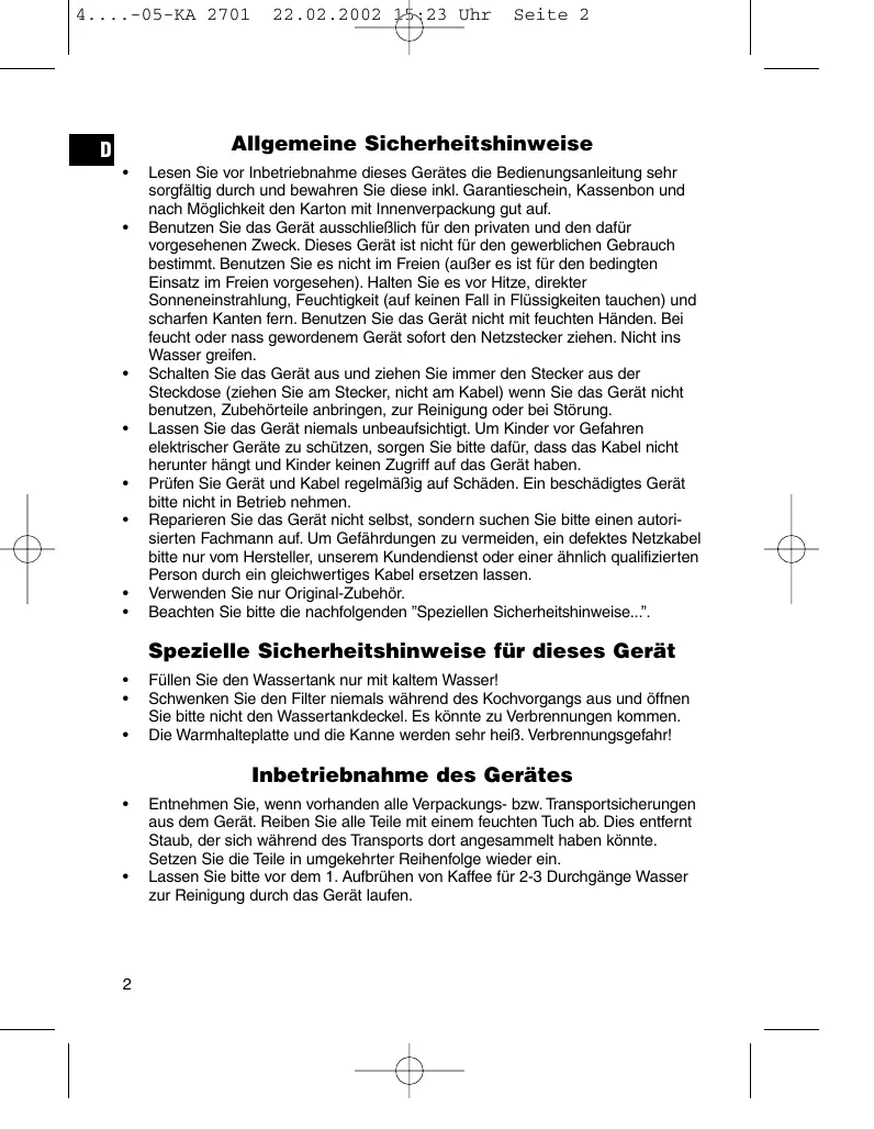 KA 2701 - OTHER MANUAL - Küchengerät CLATRONIC - Kostenlose Bedienungsanleitung