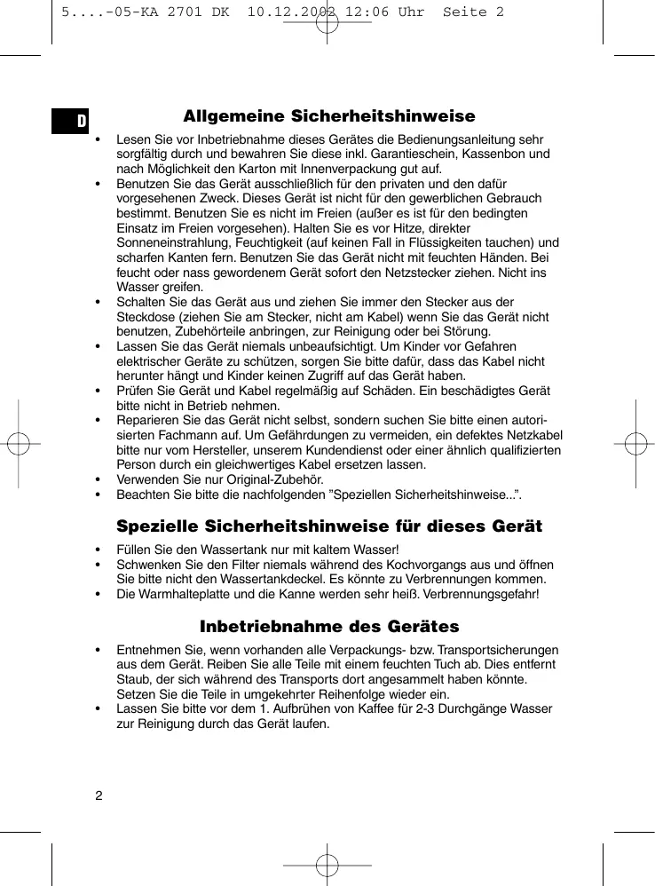 KA 2701 DK - OTHER MANUAL - Küchengerät CLATRONIC - Kostenlose Bedienungsanleitung