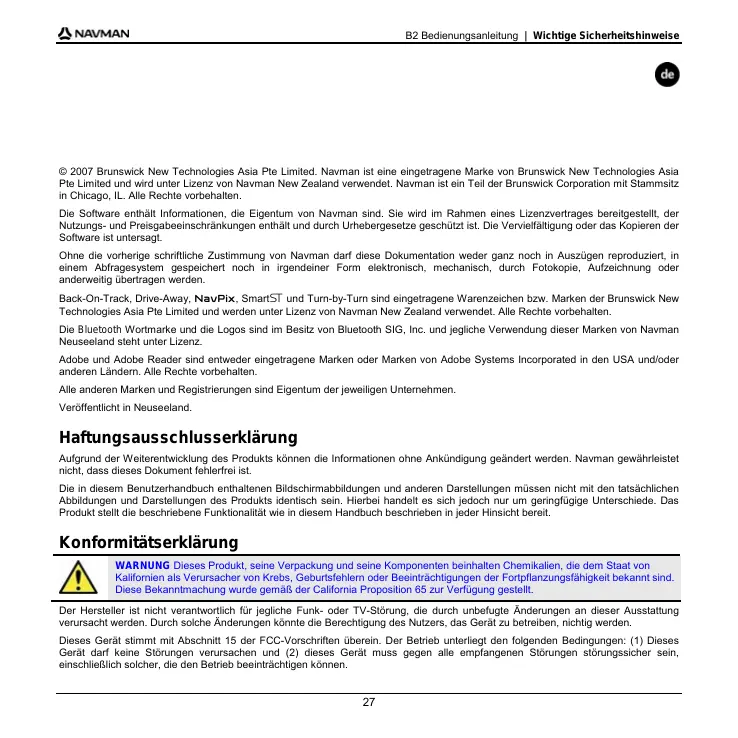 Finden Sie kostenlos die Bedienungsanleitung des Geräts B2 NAVMAN als PDF.
