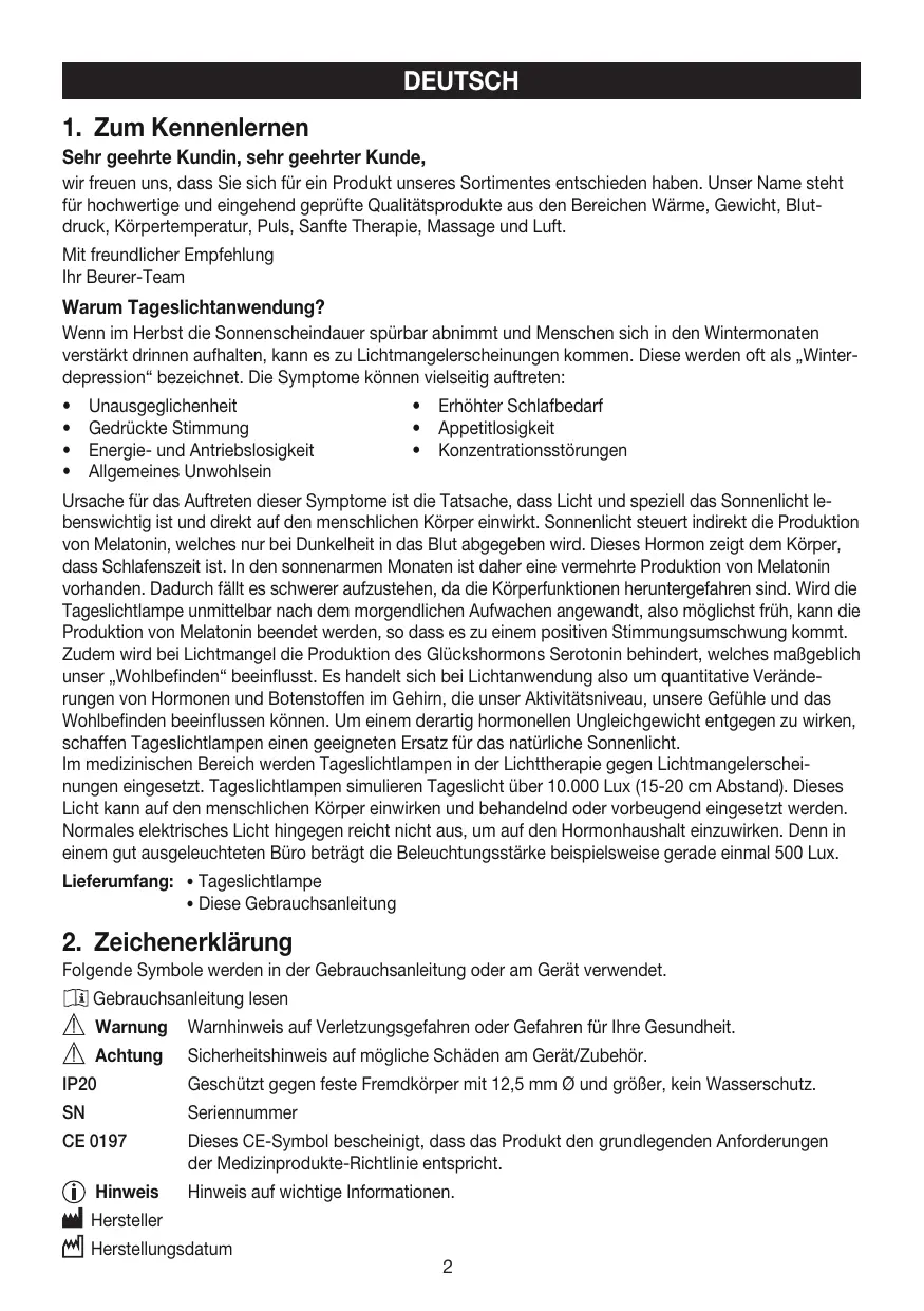 TL 80 - Lichttherapielampe BEURER - Kostenlose Bedienungsanleitung