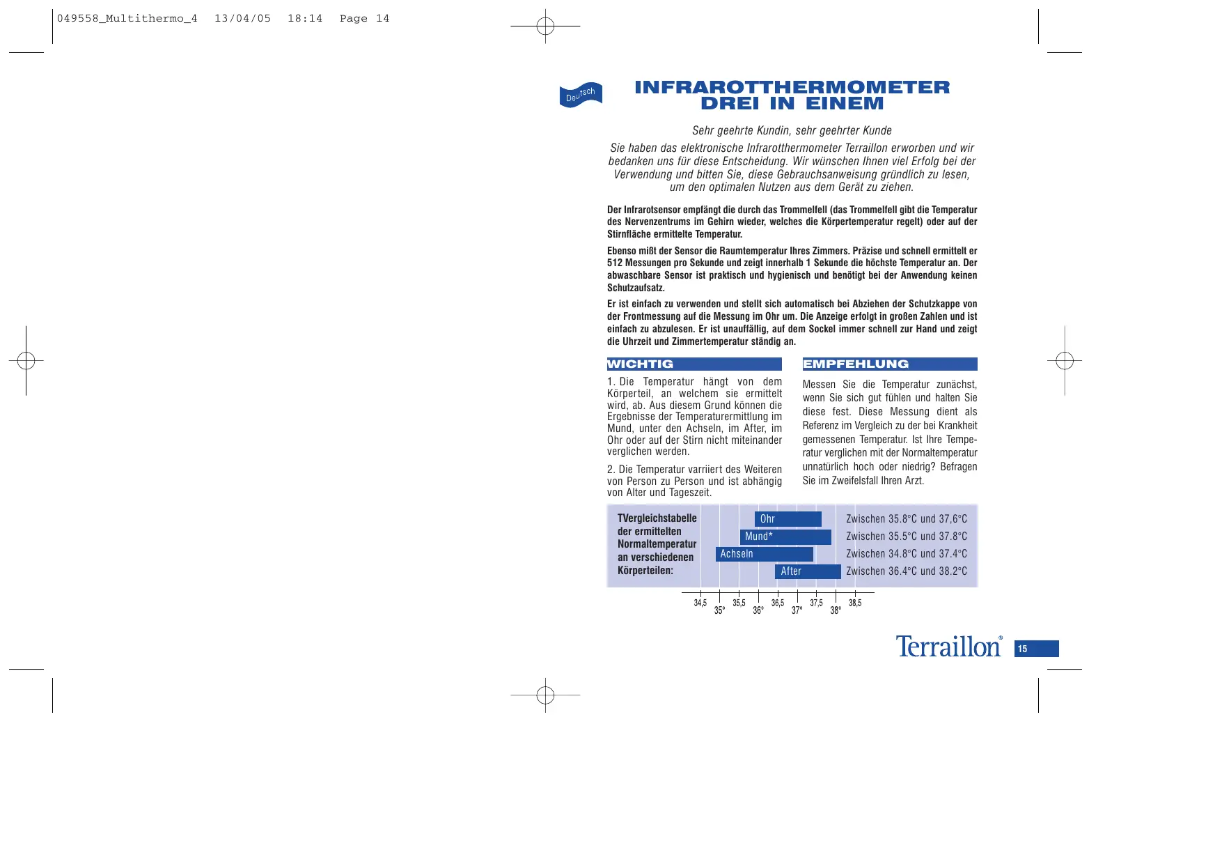 BEDIENUNGSANLEITUNG MULTITHERMO 4 TERRAILLON