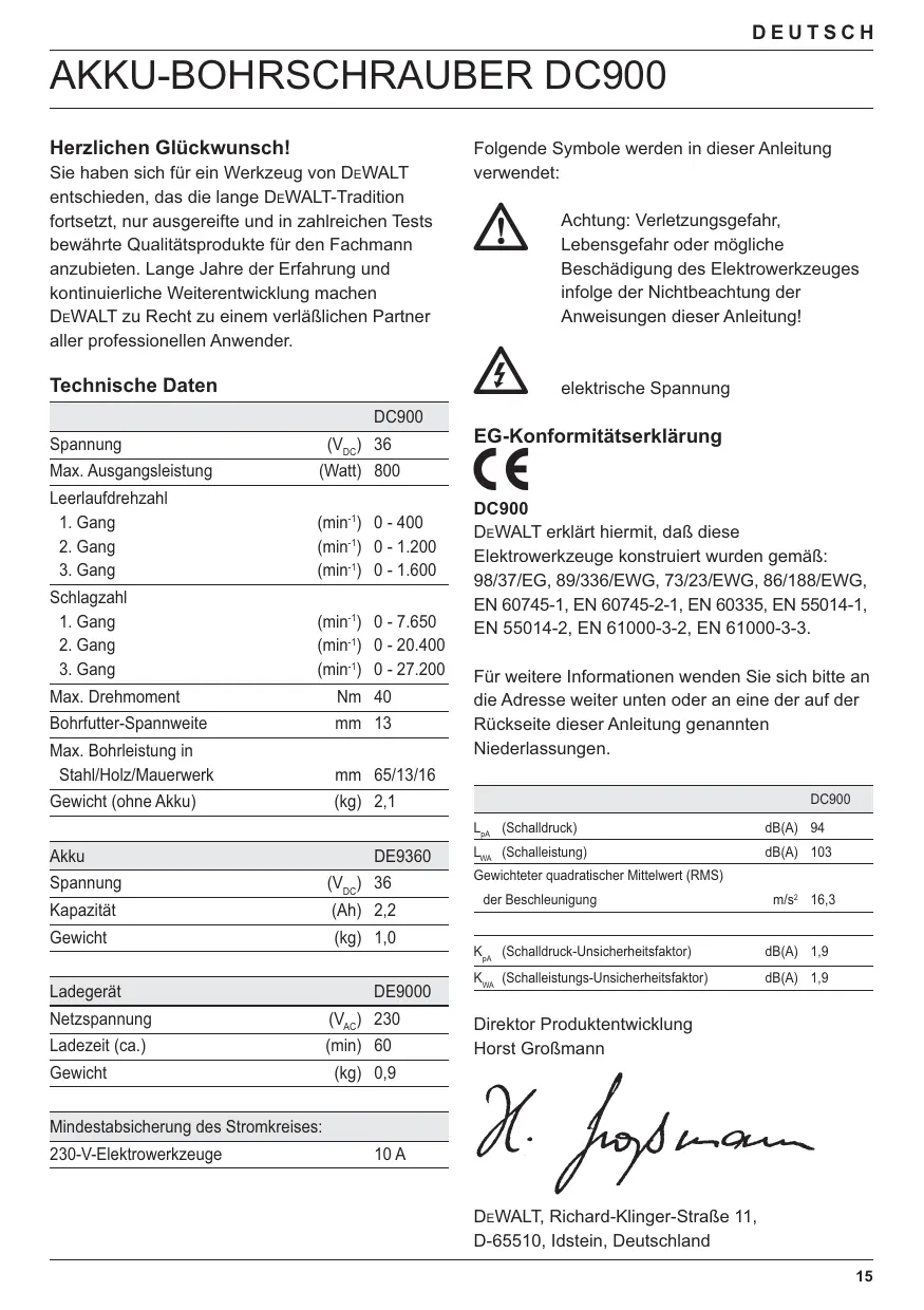 BEDIENUNGSANLEITUNG DC900KL DEWALT