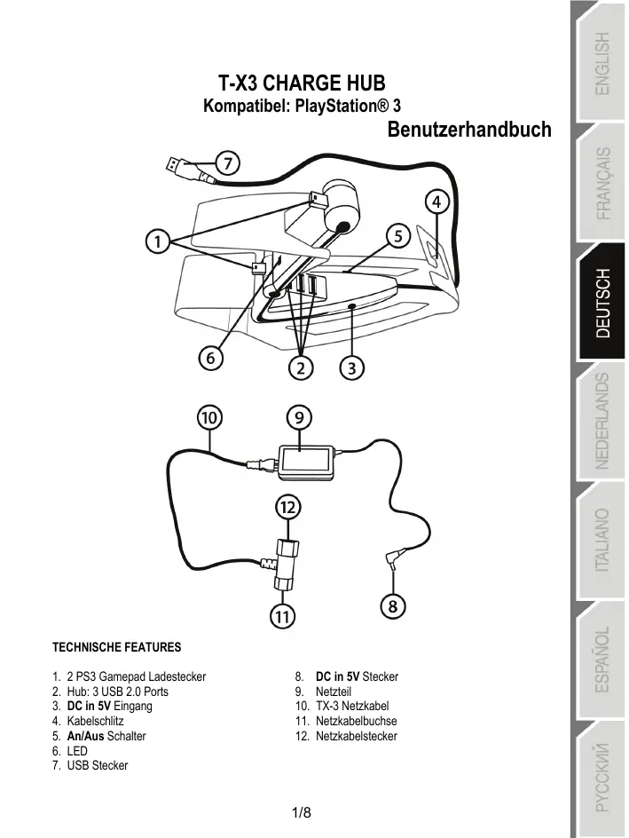 BEDIENUNGSANLEITUNG T-X3 CHARGE HUB THRUSTMASTER