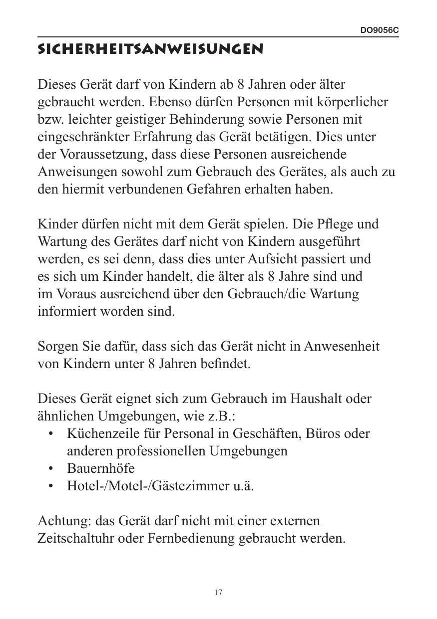 BEDIENUNGSANLEITUNG DO9056C DOMO