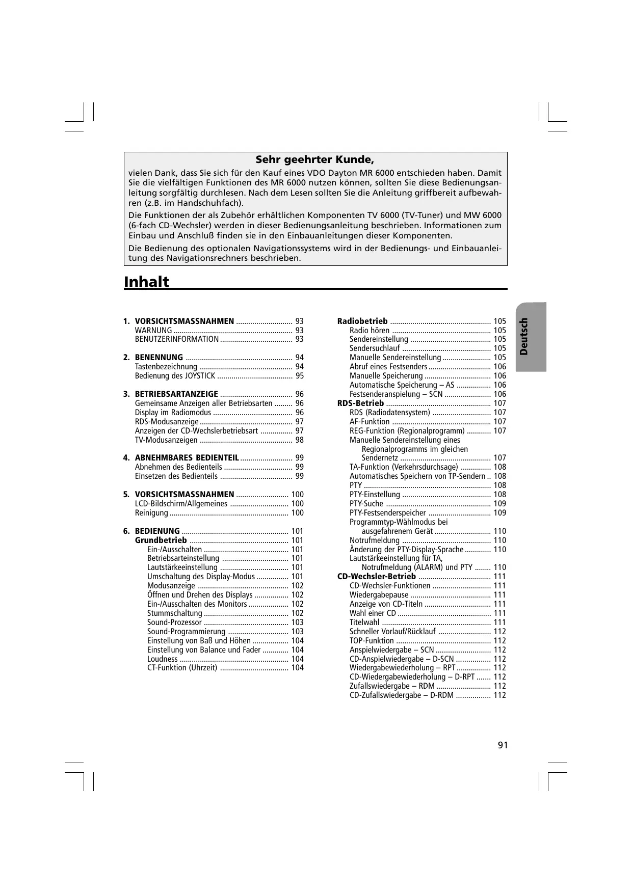 BEDIENUNGSANLEITUNG MR6000 VDO DAYTON