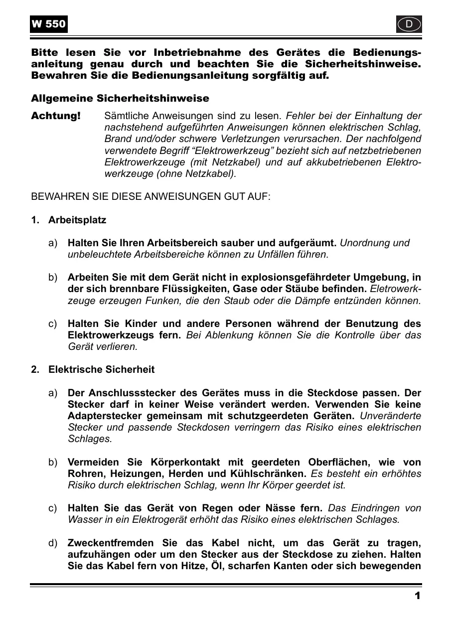 BEDIENUNGSANLEITUNG W 550 WAGNER