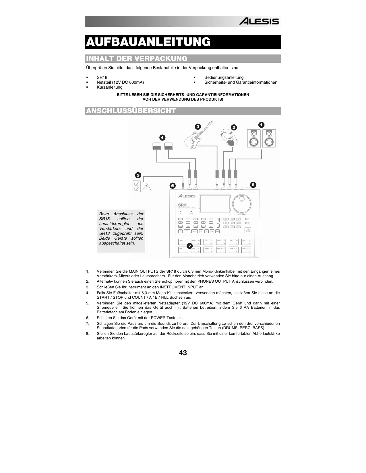 BEDIENUNGSANLEITUNG SR18 ALESIS