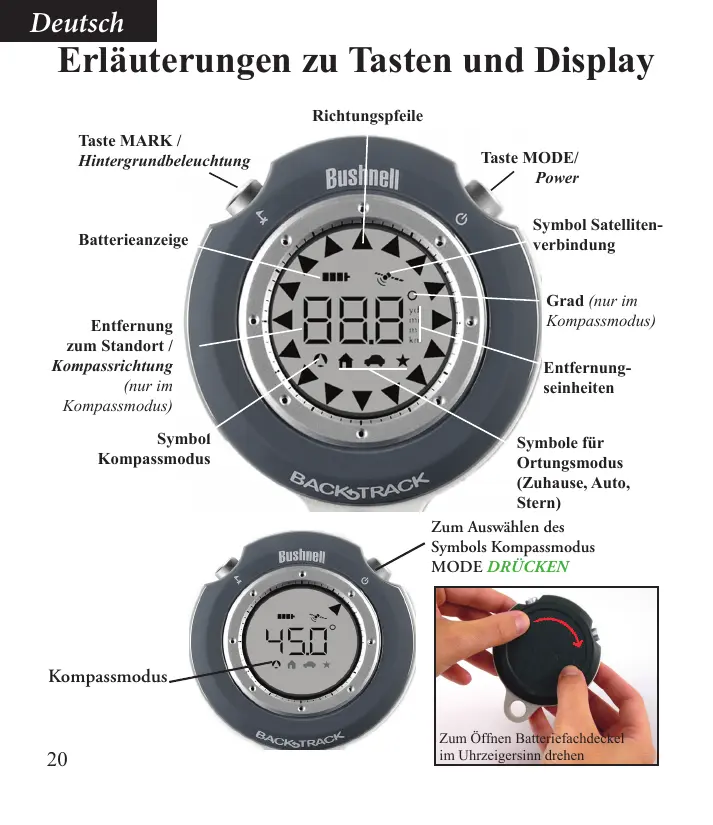 Benutzung Ihres Bushnell BackTrack Deutsch