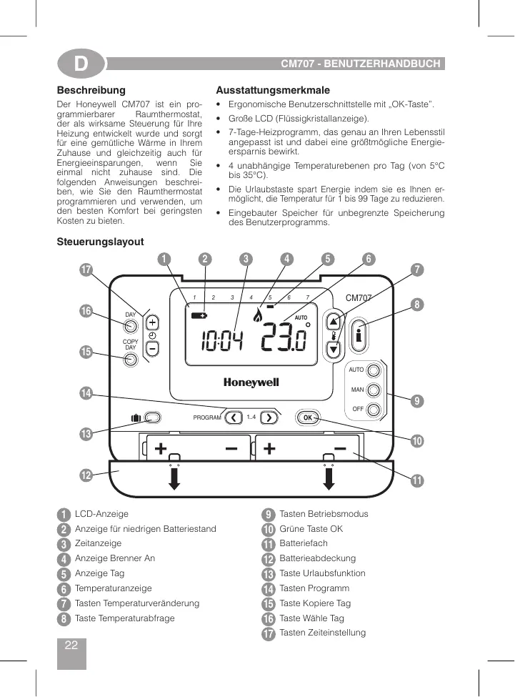 CM707 - Programmierbarer Thermostat HONEYWELL - Kostenlose Bedienungsanleitung