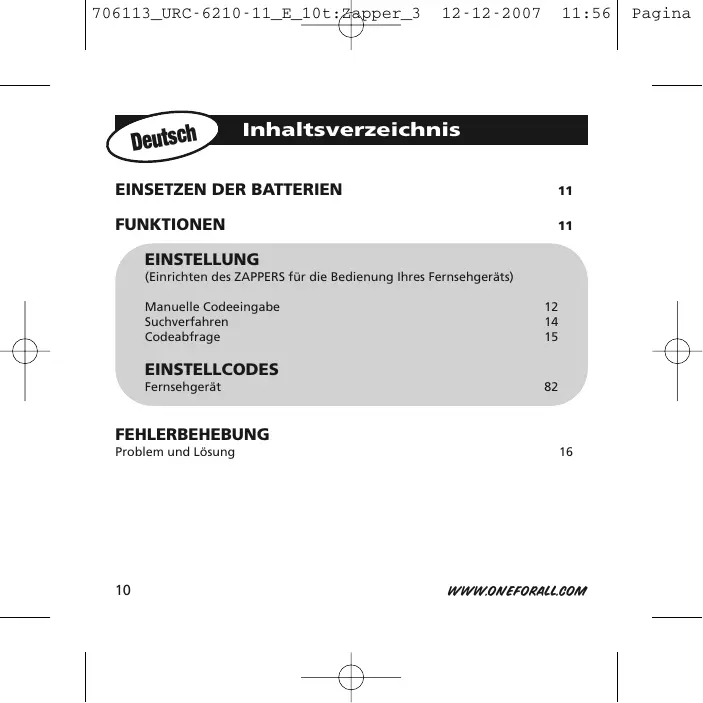 URC 6211 - Universelle Fernbedienung ONEFORALL - Kostenlose Bedienungsanleitung