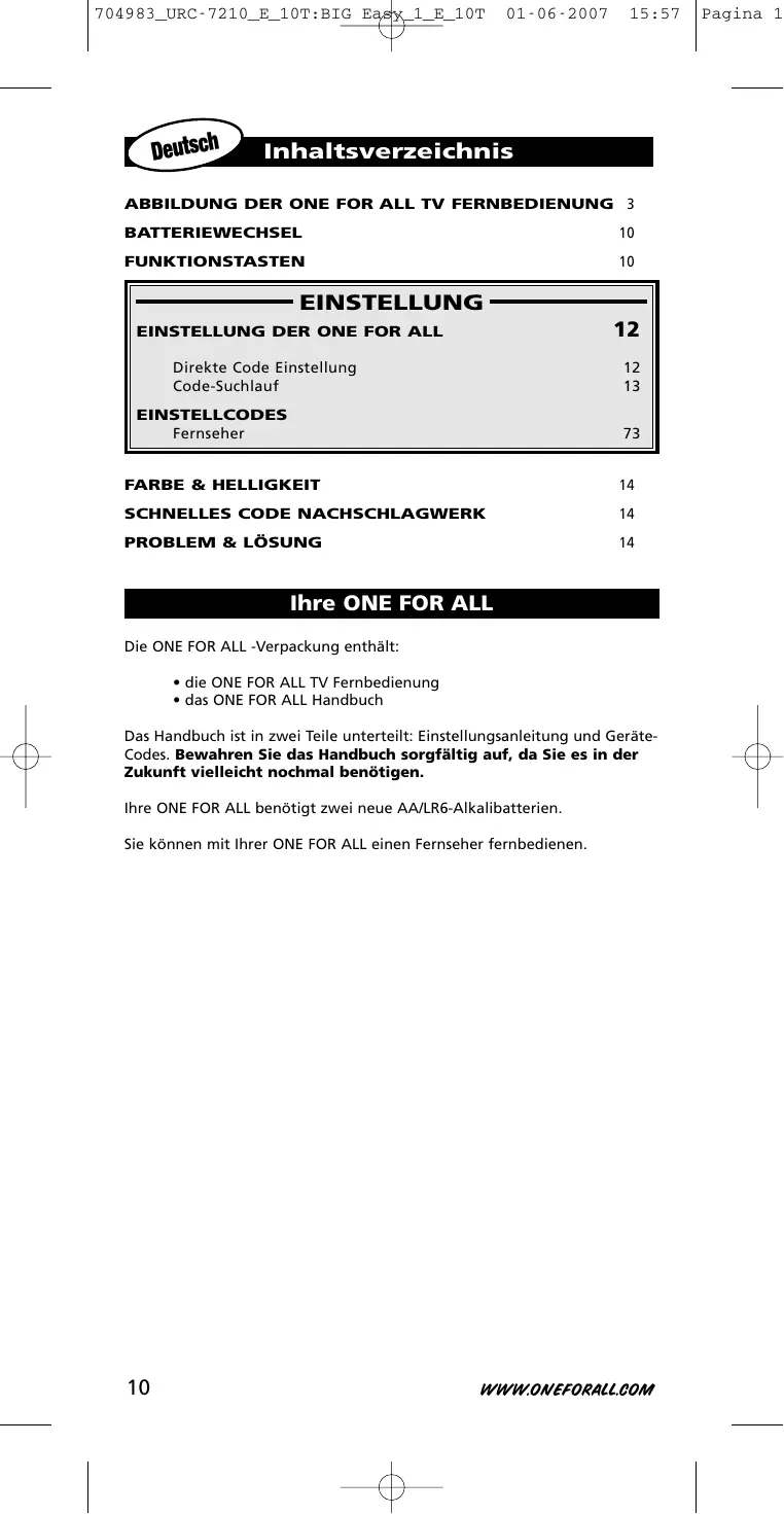 BEDIENUNGSANLEITUNG URC 7210 ONEFORALL