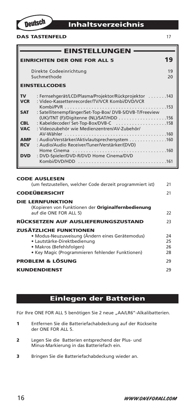 BEDIENUNGSANLEITUNG URC 7950 ONEFORALL