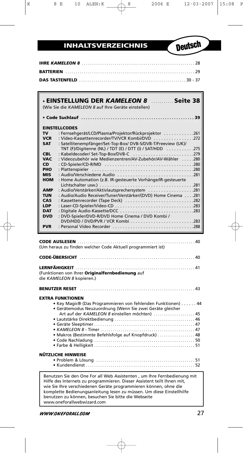 URC 8308 - Universelle Fernbedienung ONEFORALL - Kostenlose Bedienungsanleitung