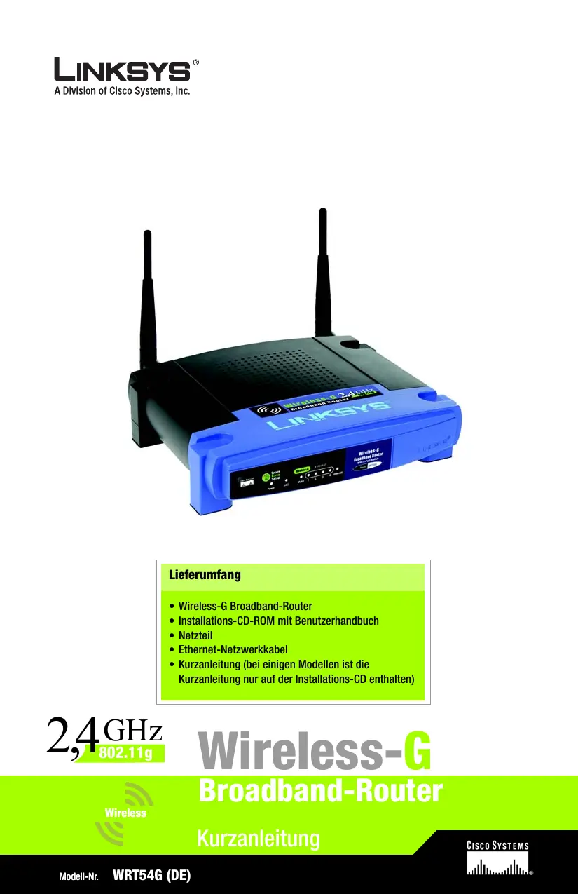 Laden Sie die Anleitung für Ihr Router kostenlos im PDF-Format! Finden Sie Ihr Handbuch WRT54G - LINKSYS und nehmen Sie Ihr elektronisches Gerät wieder in die Hand. Auf dieser Seite sind alle Dokumente veröffentlicht, die für die Verwendung Ihres Geräts notwendig sind. WRT54G von der Marke LINKSYS.
