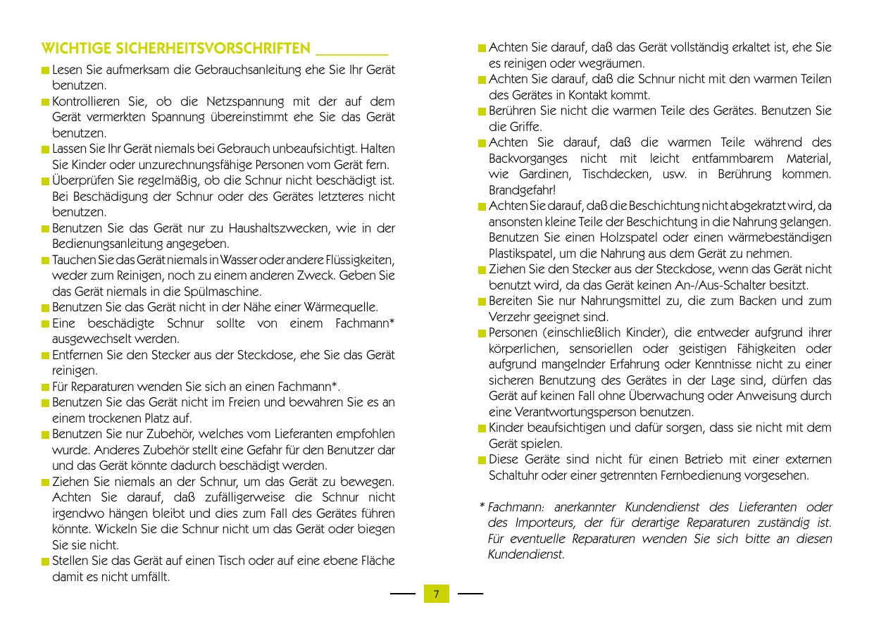 Benutzen Sie das Gerät nur zu Haushaltszwecken, wie in der Bedienungsanleitung angegeben.