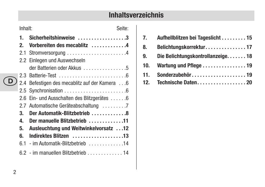 MECABLITZ 28 C-2 Bedienungsanleitung Operating instructions Mode d’emploi Handleiding Inhaltsverzeichnis Inhalt: