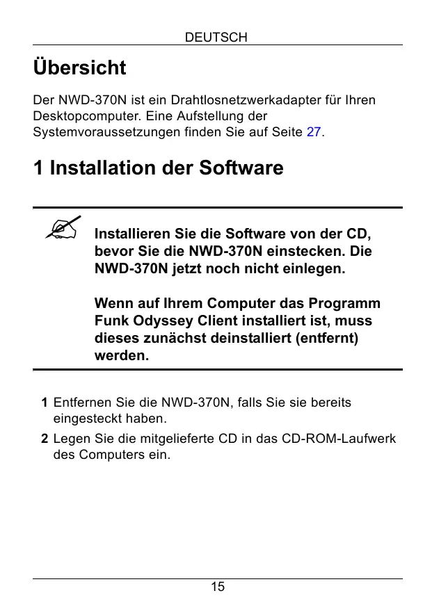ES Setzen Sie die Hardware erst ein, wenn Sie die Software von der CD installiert haben.