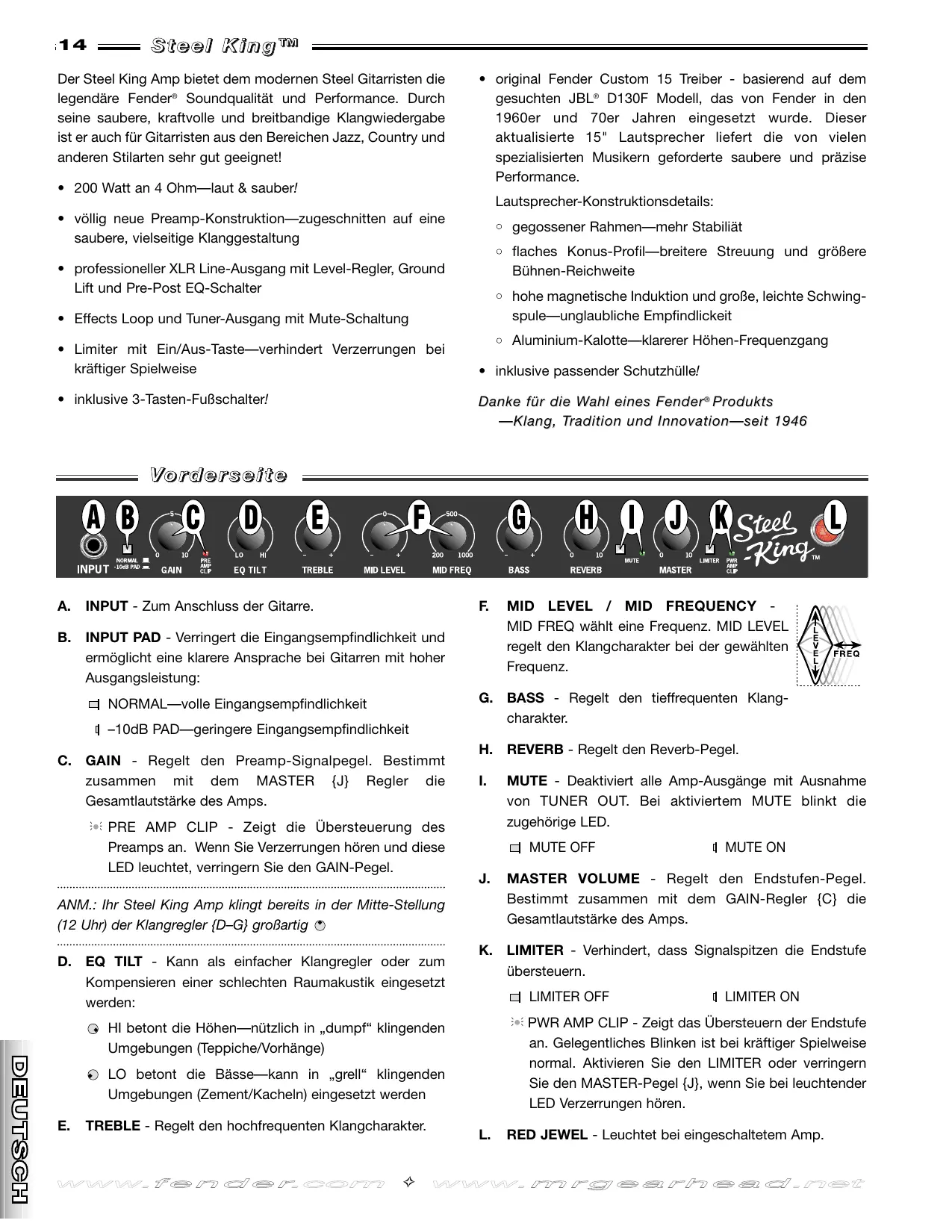STEEL KING - Gitarrenverstärker FENDER - Kostenlose Bedienungsanleitung