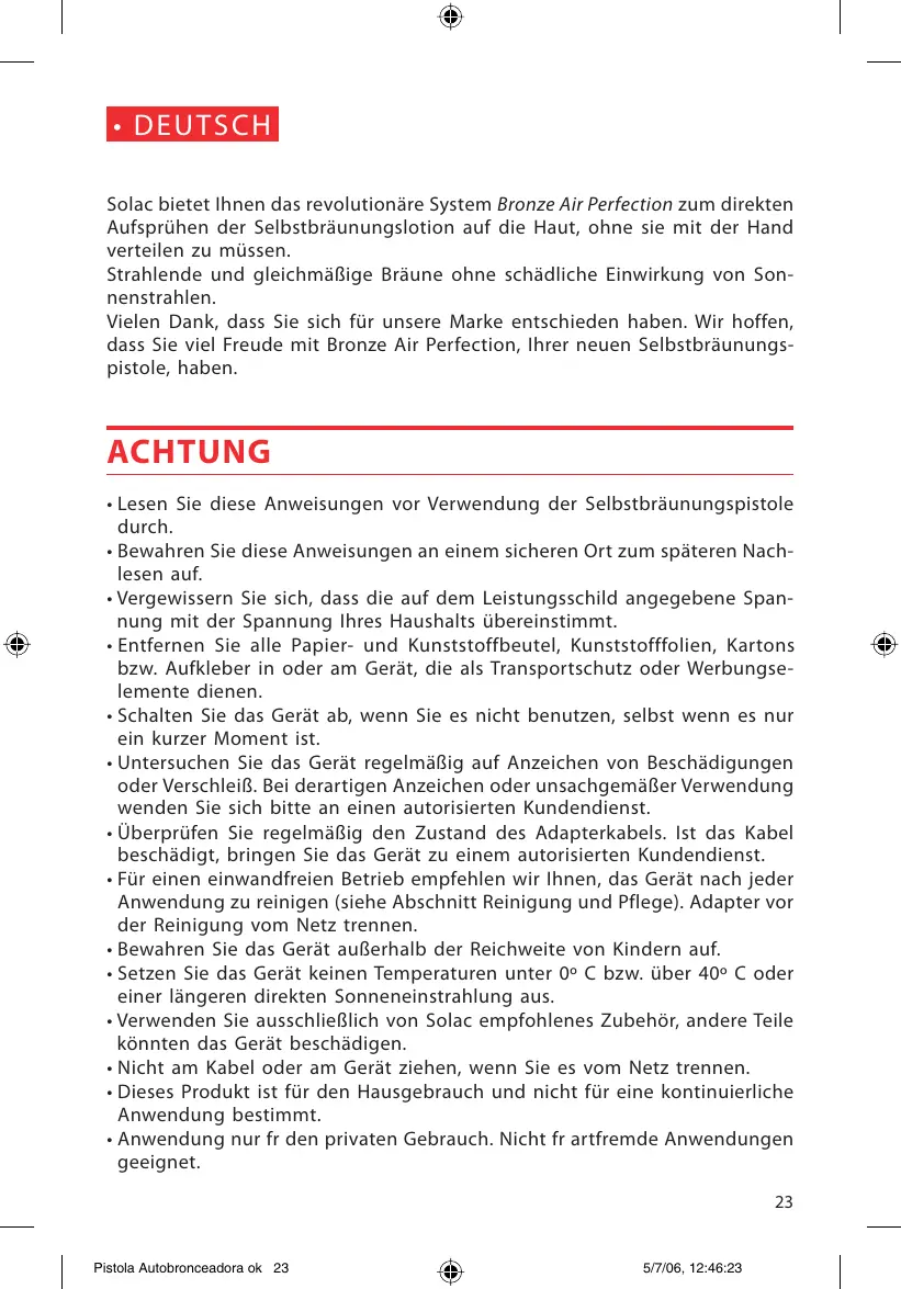 - Lesen Sie diese Anweisungen vor Verwendung der Selfbstbraunungspistole durch.