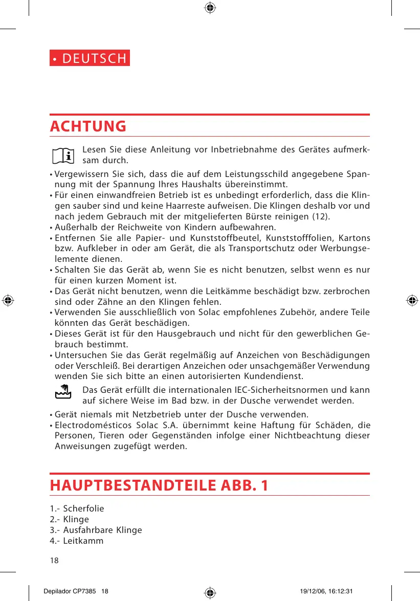 BEDIENUNGSANLEITUNG CP7385 SOLAC