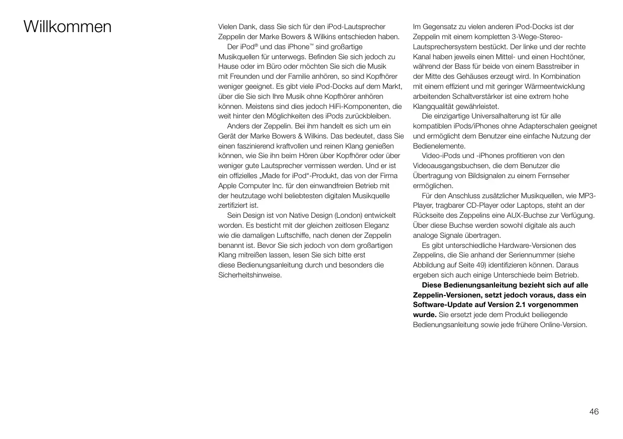 Finden Sie kostenlos die Bedienungsanleitung des Geräts B&W ZEPPELIN B&W als PDF.