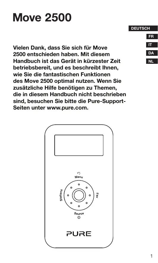 Laden Sie die Anleitung für Ihr Undefiniert kostenlos im PDF-Format! Finden Sie Ihr Handbuch MOVE 2500, MOVE 400D - PURE und nehmen Sie Ihr elektronisches Gerät wieder in die Hand. Auf dieser Seite sind alle Dokumente veröffentlicht, die für die Verwendung Ihres Geräts notwendig sind. MOVE 2500, MOVE 400D von der Marke PURE.