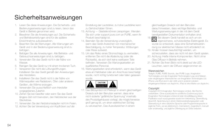 Laden Sie die Anleitung für Ihr Undefiniert kostenlos im PDF-Format! Finden Sie Ihr Handbuch TWILIGHT - PURE und nehmen Sie Ihr elektronisches Gerät wieder in die Hand. Auf dieser Seite sind alle Dokumente veröffentlicht, die für die Verwendung Ihres Geräts notwendig sind. TWILIGHT von der Marke PURE.