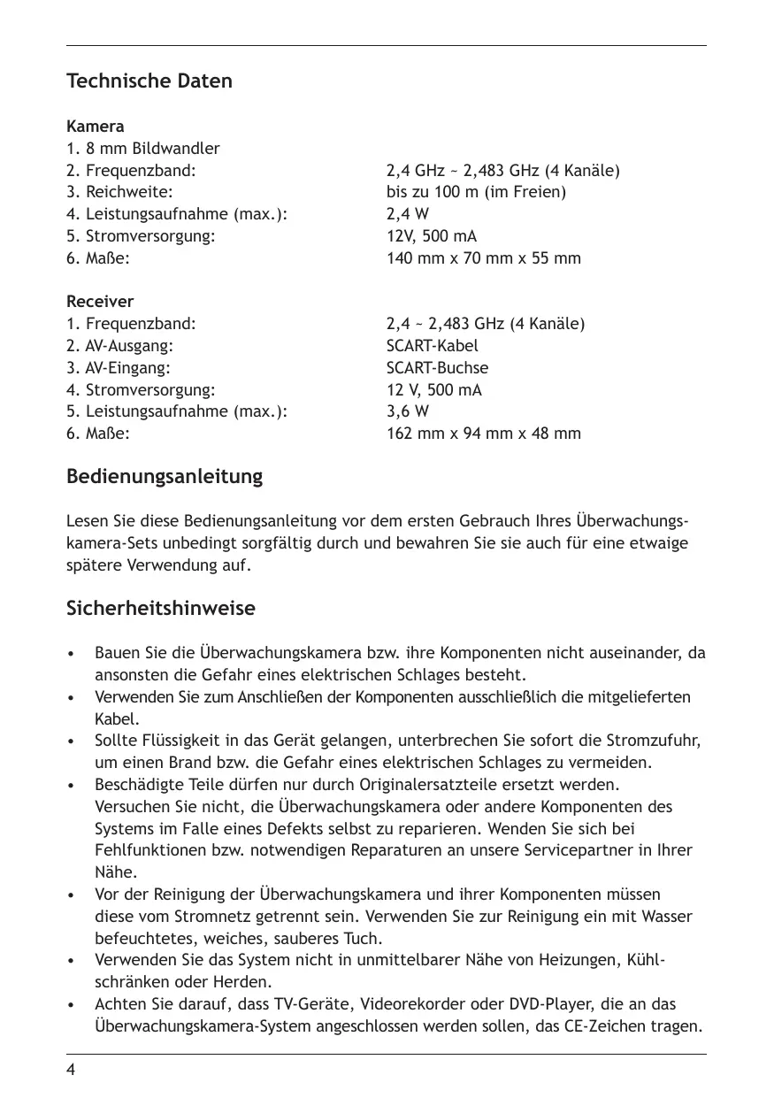 Lesen Sie diese Bedienungsanleitung vor dem ersten Gebrauch Ihres Überwachungskamera-Sets unbedingt sorgfältig durch und bewahren Sie sie auch für eine etwaige spätere Verwendung auf.