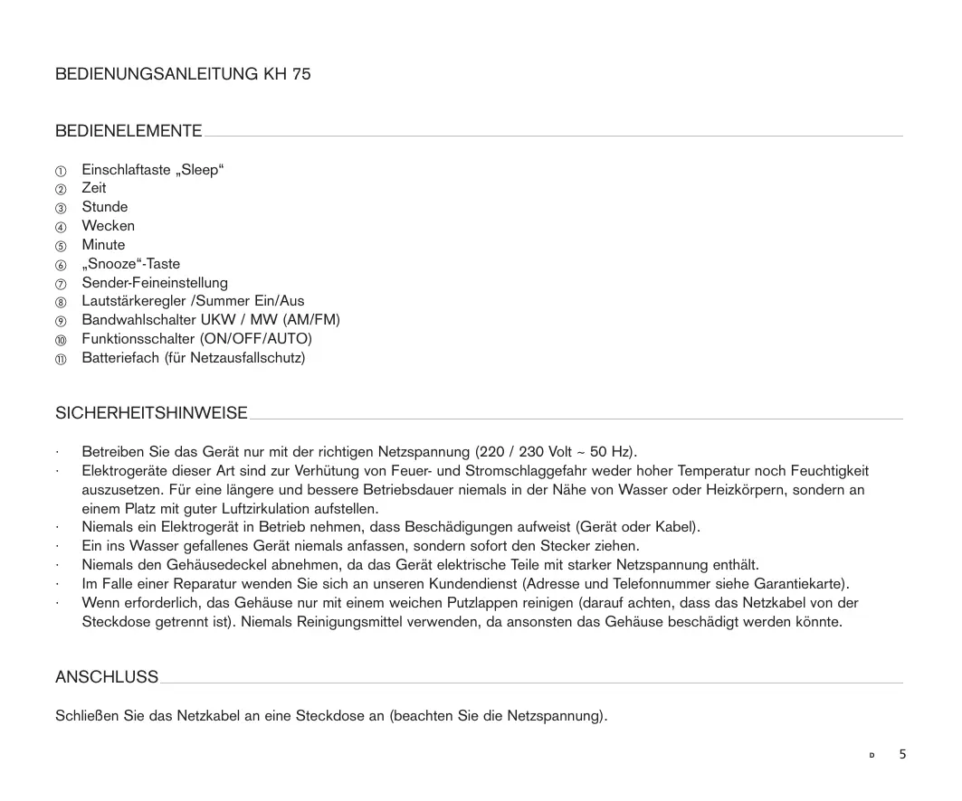 BEDIENUNGSANLEITUNG KH 75 RADIO ALARM CLOCK EBENCH