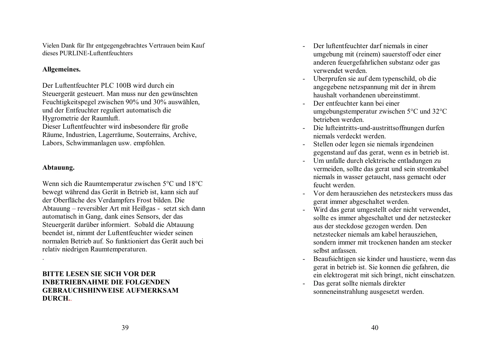 Vielen Dank für Ihr entgegengebrachtes Vertrauen beim Kauf dieses PURLINE-Luftentfeuchters