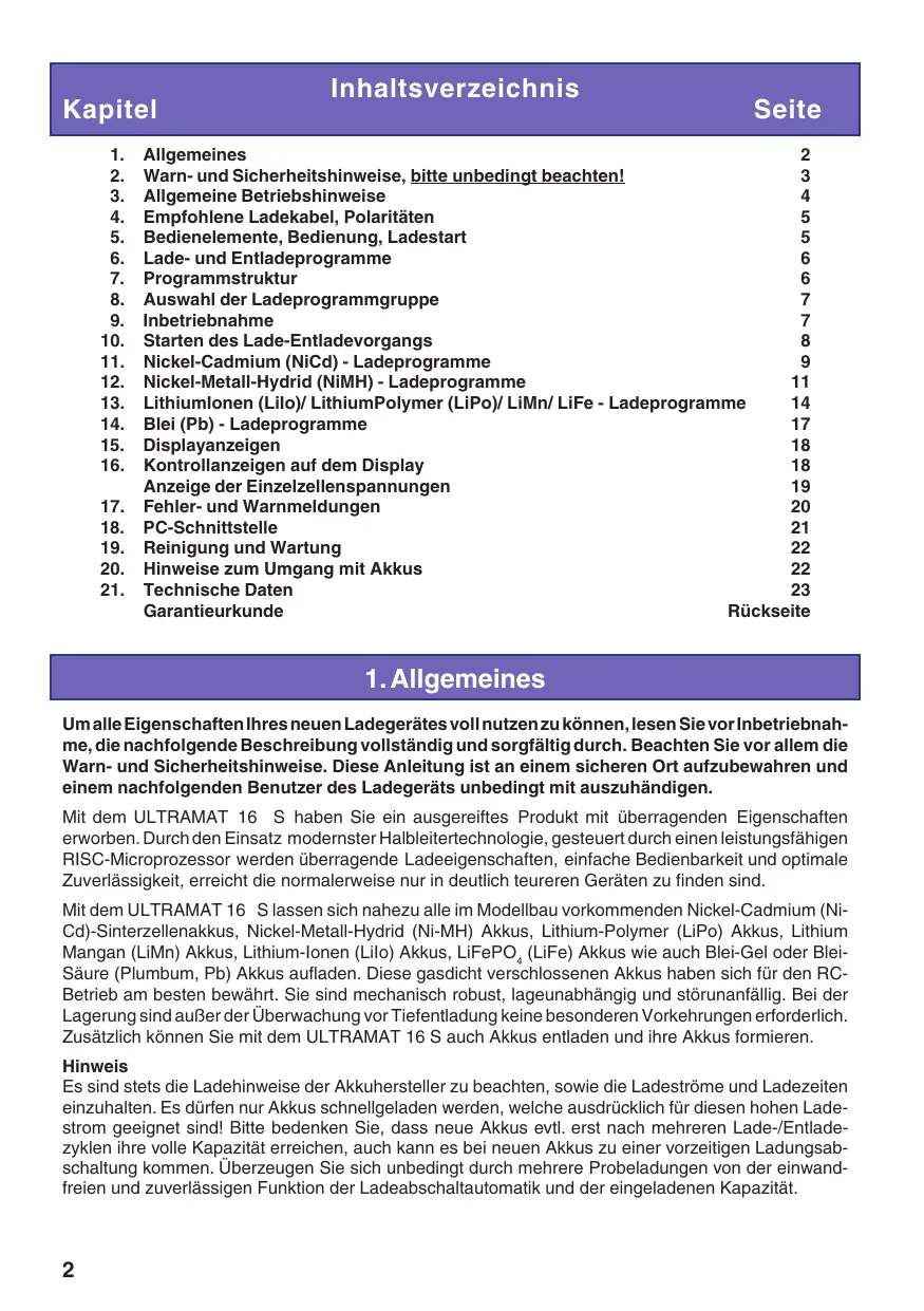 Finden Sie kostenlos die Bedienungsanleitung des Geräts ULTRAMAT 16 S GRAUPNER als PDF.
