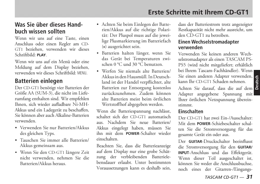 Finden Sie kostenlos die Bedienungsanleitung des Geräts CD-GT1 TASCAM als PDF.