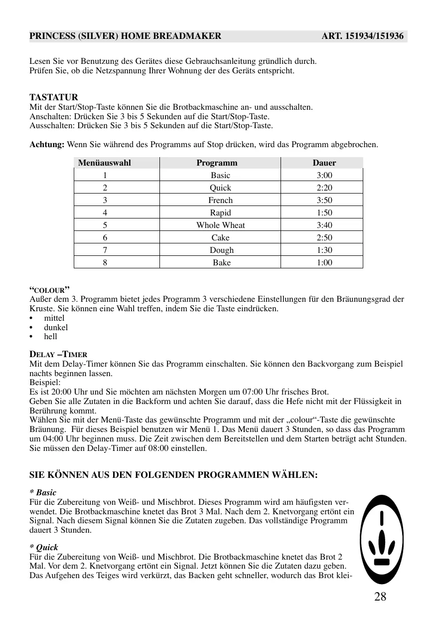 151934 - PRINCESS - Kostenlose Bedienungsanleitung