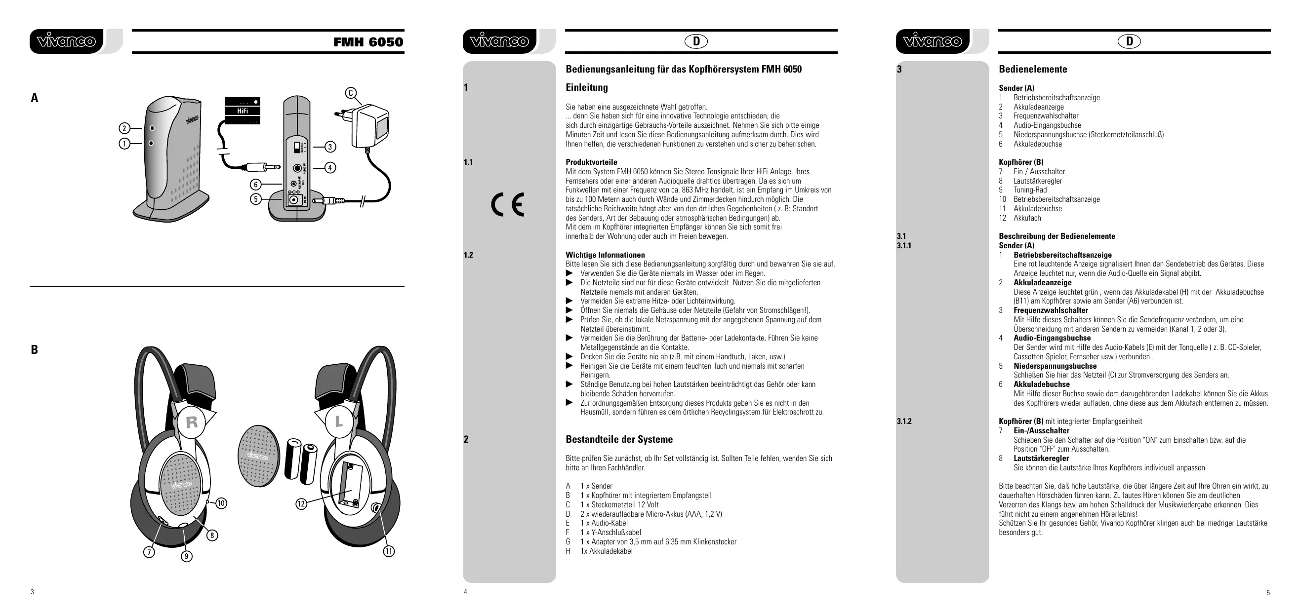 BEDIENUNGSANLEITUNG FMH 6050 RF HEADPHONE SET VIVANCO