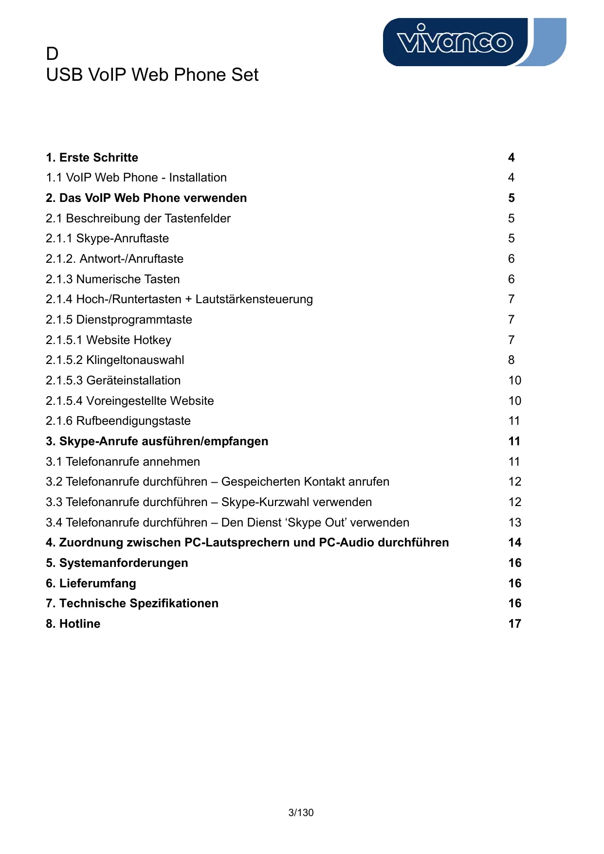 Finden Sie kostenlos die Bedienungsanleitung des Geräts USB VOICE OVER IP TELEPHONE VIVANCO als PDF.