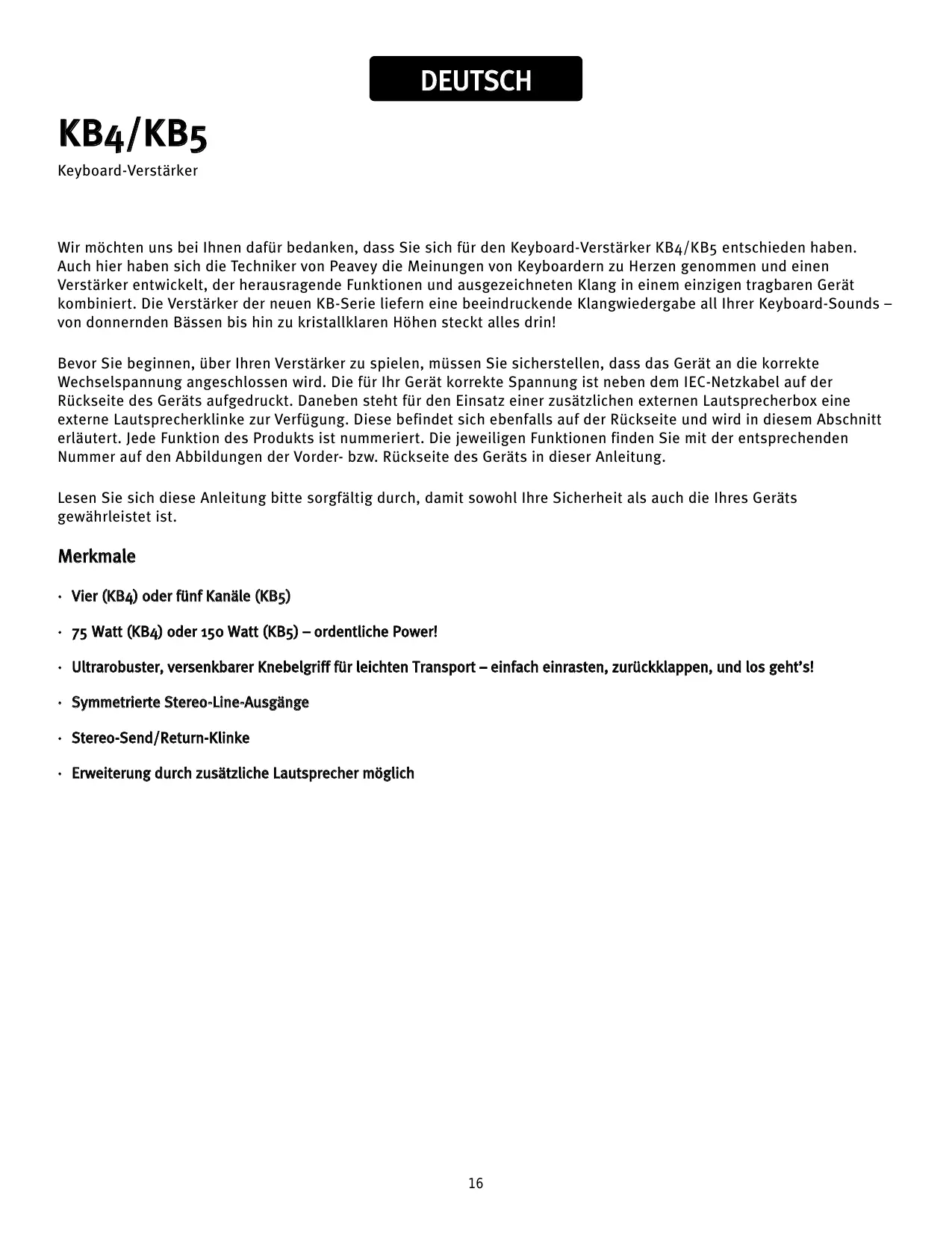 KB4 - Tastaturverstärker PEAVEY - Kostenlose Bedienungsanleitung