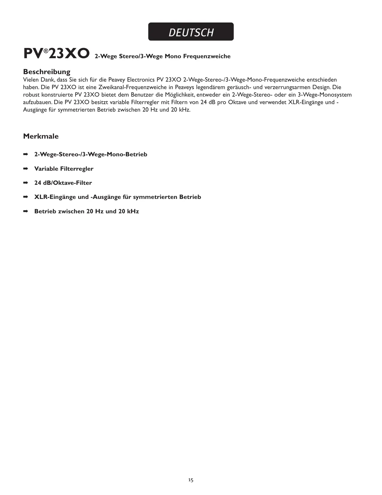 BEDIENUNGSANLEITUNG PV 23XO PEAVEY