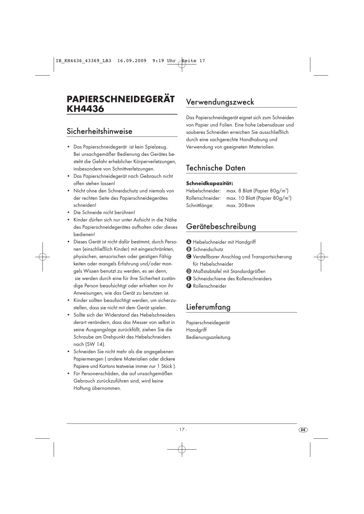 BEDIENUNGSANLEITUNG KH 4436 PAPER TRIMMER UNITED OFFICE