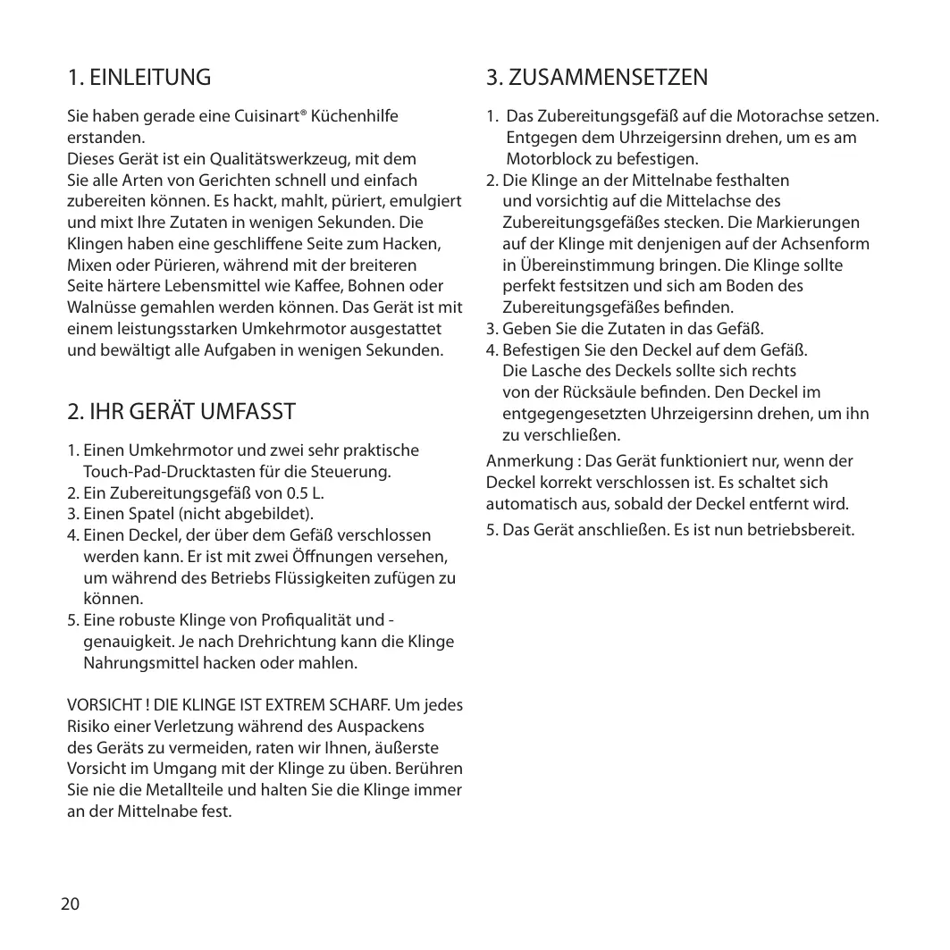 - Benutzen Sie dieses Gerät ausschließlich mit Zubehörteilen von Cuisinart® .