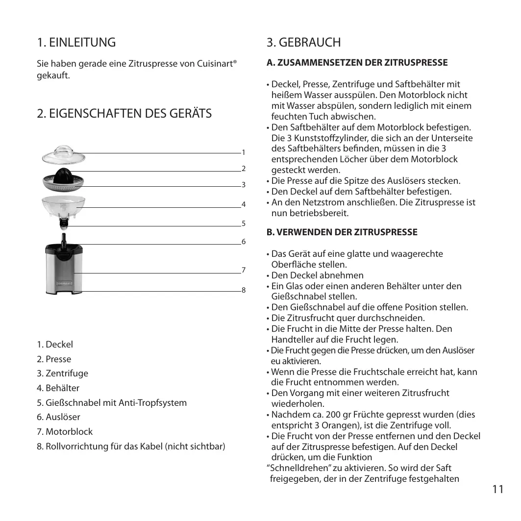 A. ZUSAMMENSETZEN DER ZITRUSPRESSE