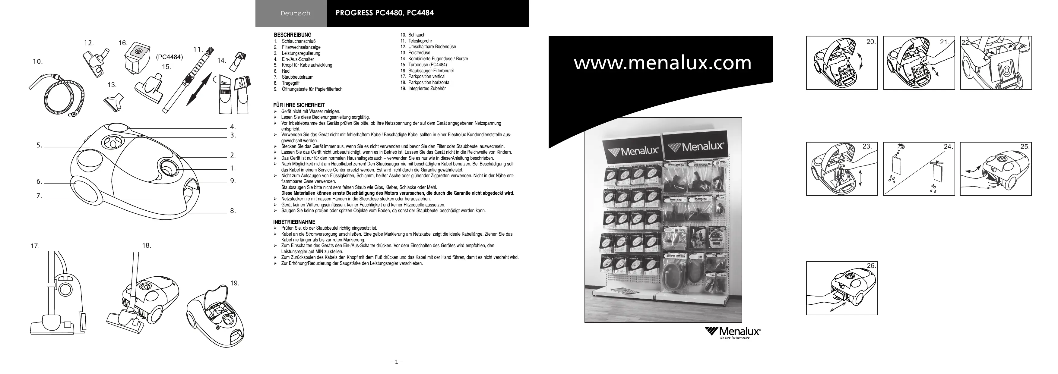 Laden Sie die Anleitung für Ihr Staubsauger kostenlos im PDF-Format! Finden Sie Ihr Handbuch PC4484 - PROGRESS und nehmen Sie Ihr elektronisches Gerät wieder in die Hand. Auf dieser Seite sind alle Dokumente veröffentlicht, die für die Verwendung Ihres Geräts notwendig sind. PC4484 von der Marke PROGRESS.